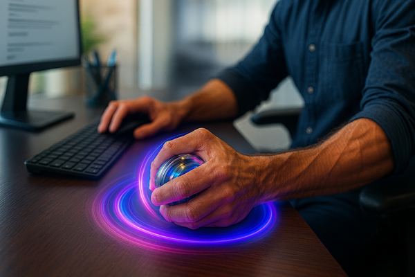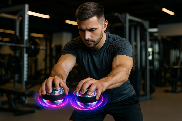 Gyroscopic torque drives constant muscular effort, rapidly boosting wrist, forearm, and grip power.